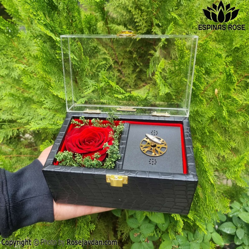 این محصول یکی اززیباترین نمونه های گل رز جاودان موزیکال می باشد که در قسمت زیر موزیکال جای کادو دارد .جهت سفارش این محصول می توان آن را با حک و متن دلخواهتان ثبت کنید. رز جاودان اسپیناس رز یکی از بهترین و زیبا ترین هدیه های شیک می باشد که می توان برای انواع مناسبت ها به عزیزانتان کادو داده و یا به عنوان دکوری چشم نواز در منزل و یا محل کار استفاده شود.