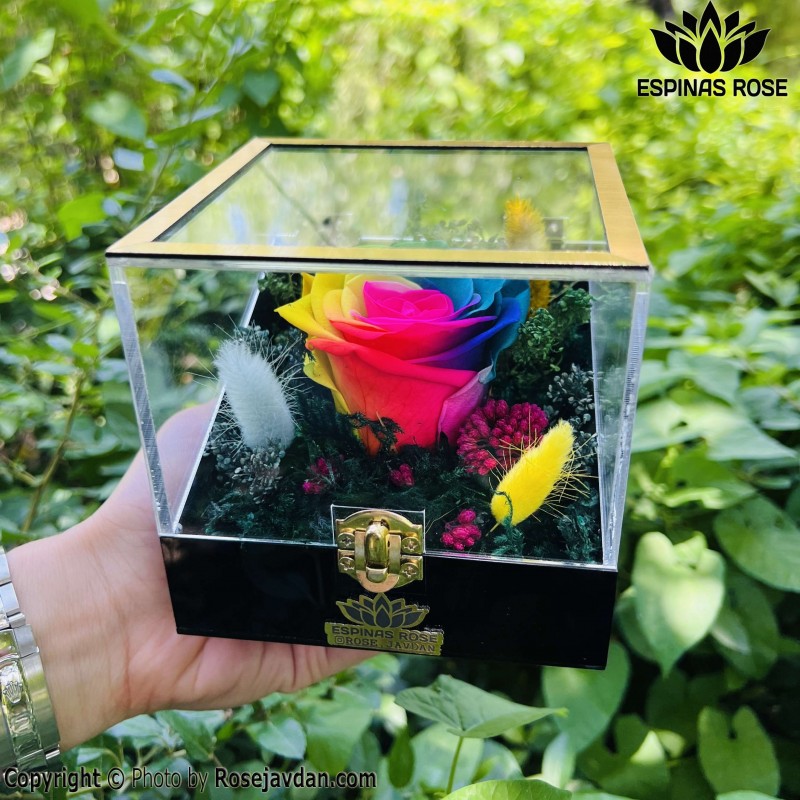 این محصول اسپیناس رز با باکس مکعبی تمام پلکسی به ابعاد 11*11*11 یکی از زیباترین مدل ها جهت دکوری و کادو می باشد که تمام خز و برگ و هورتانسیا های استفاده شده جاودان می باشد جهت سفارش این محصول می توان آن را با حک و متن دلخواهتان ثبت کنید. رز جاودان اسپیناس رز یکی از بهترین و زیبا ترین هدیه های شیک می باشد که می توان برای انواع مناسبت ها به عزیزانتان کادو داده و یا به عنوان دکوری چشم نواز در منزل و یا محل کار استفاده شود.