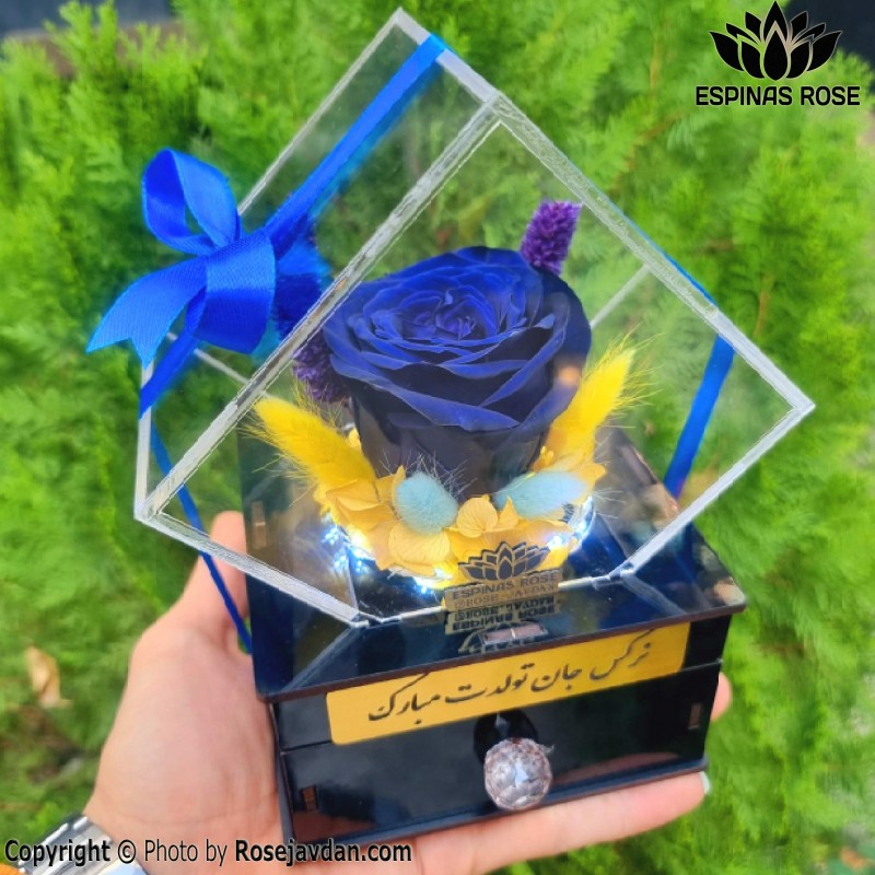 جعبه موزیکال باکس گل رز جاودان کشودار آبی کد 982 لوکس