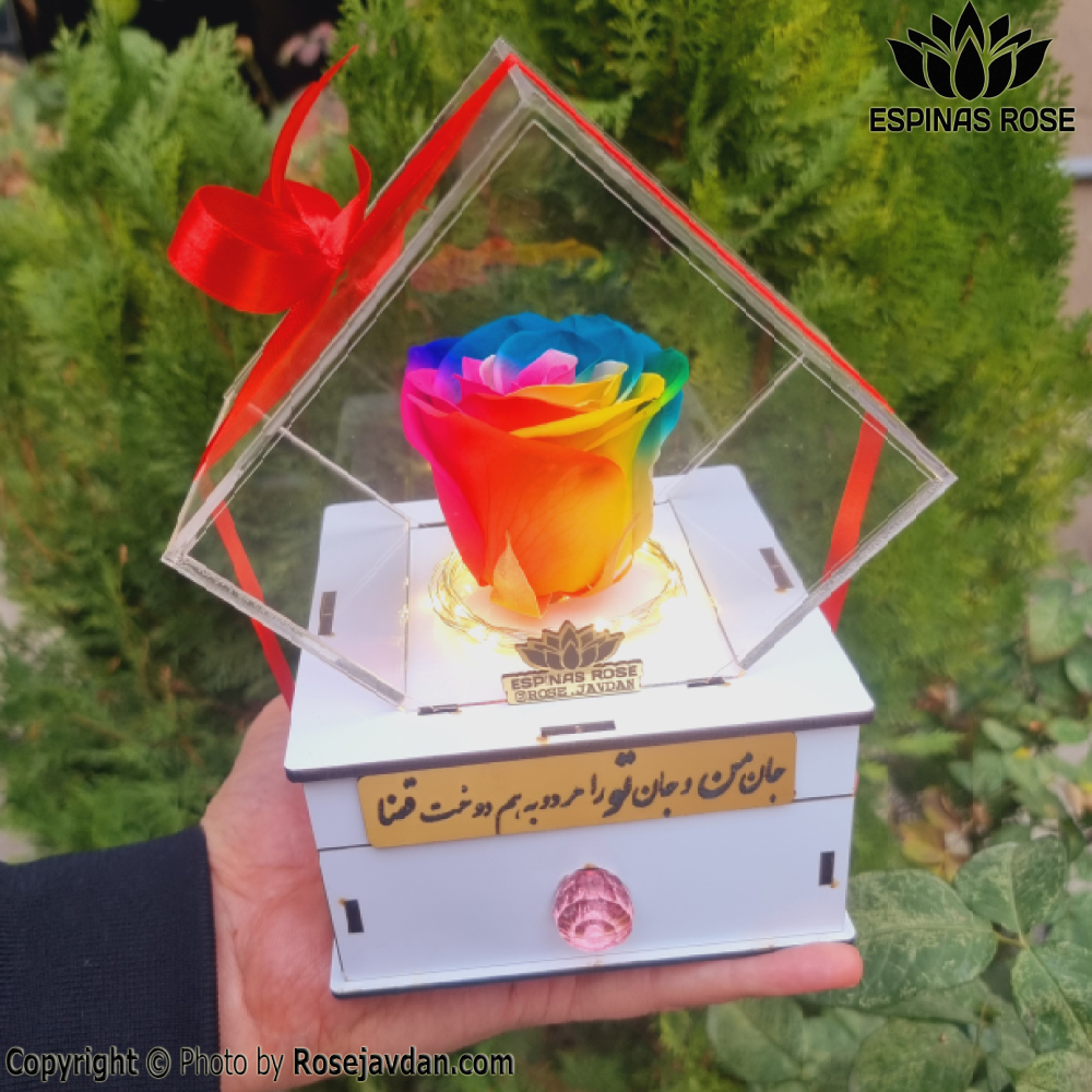 باکس سفید گل رزجاودان کشودار هفت رنگ 990 با چراغ (ریسه)
