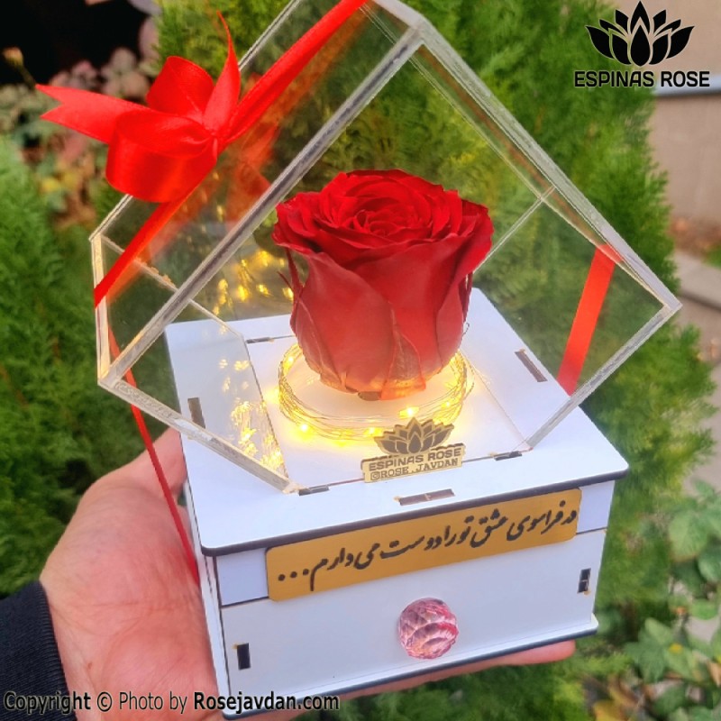 باکس سفید گل رزجاودان کشودار قرمز 991 با چراغ (ریسه)
